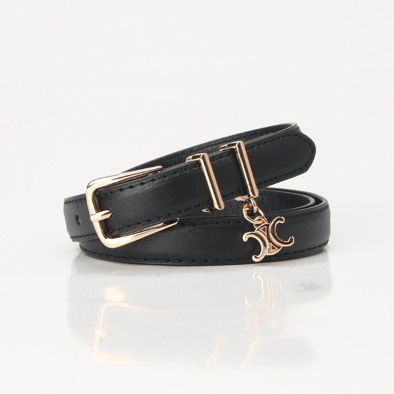 Belt With Alloy Buckle And Golden Pendant