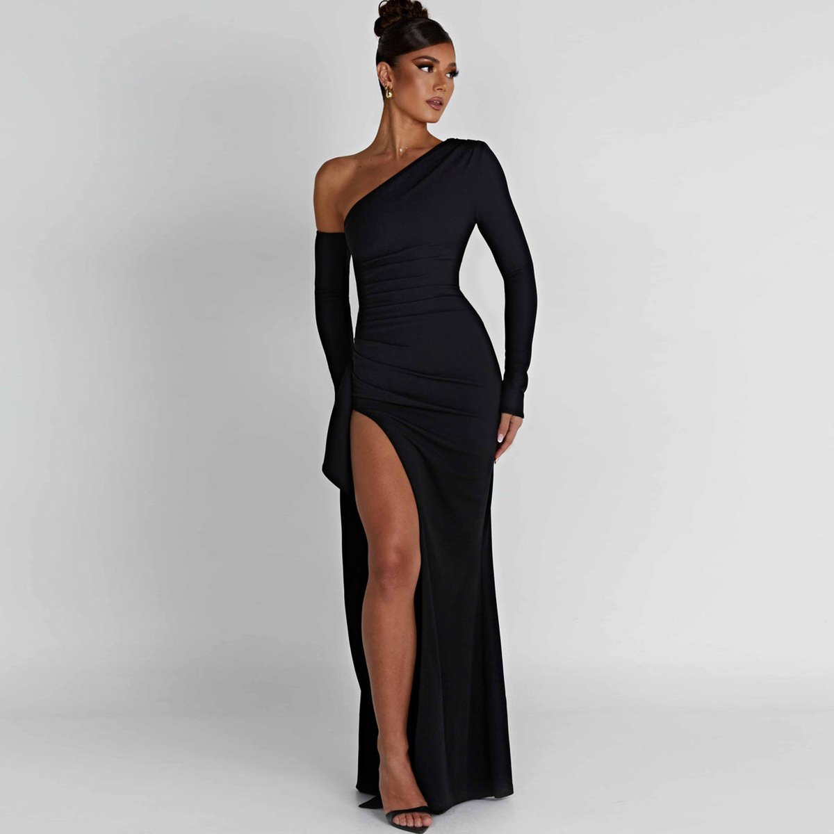 Long Dress With Hip Opening And Bare Shoulder