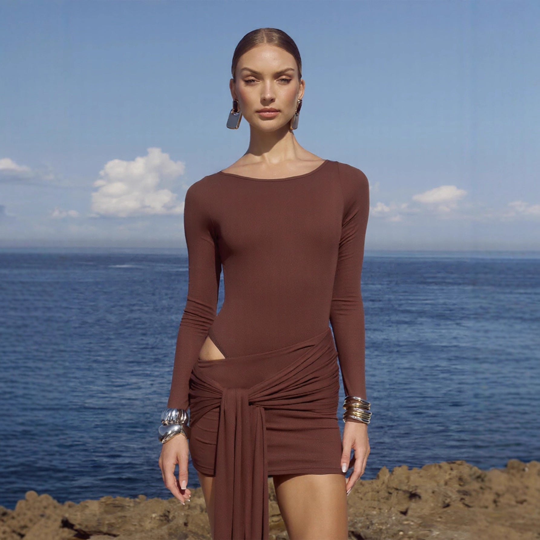 Enjoy the view with Ginevra sexy bodysuit & skirt style