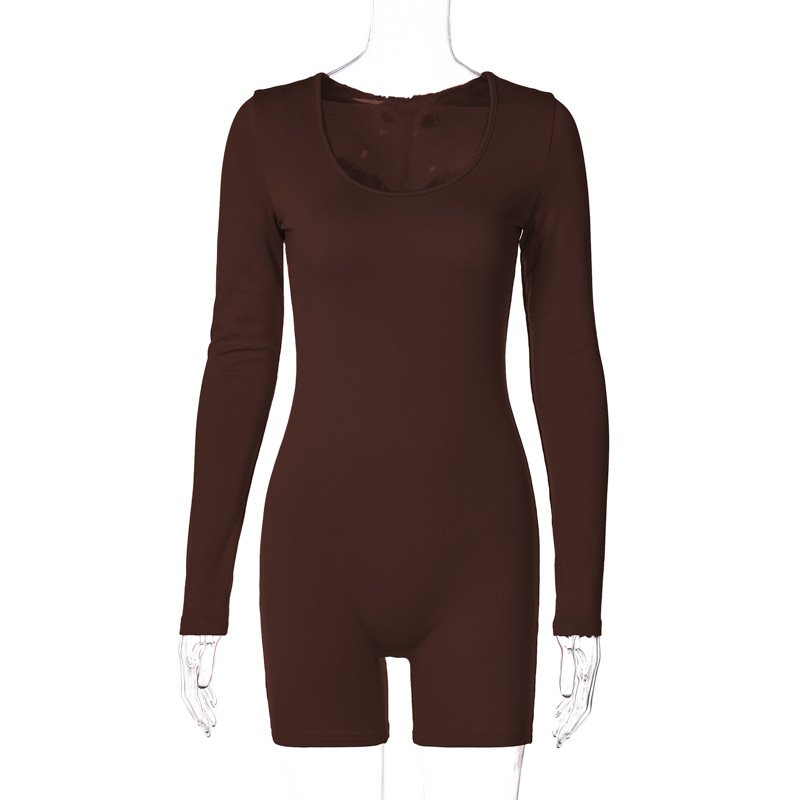 Fashion Solid Color Slim Fit Sports Long Sleeve Jumpsuit