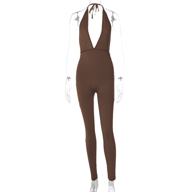 Folded Backless Sports Slim Fit Jumpsuit For Women