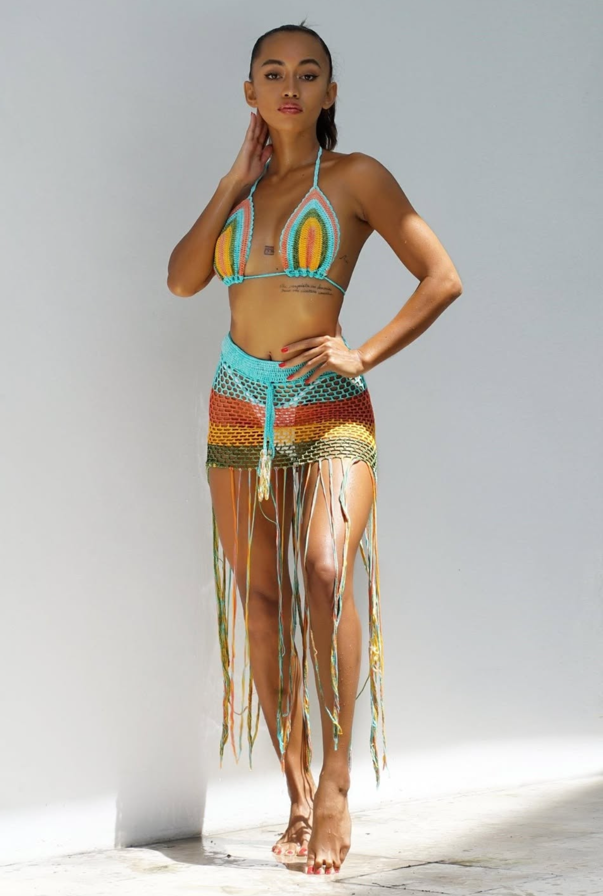 Upgrade your beach look with our Fringe Crochet Skirt Cover Up. Made with delicate crochet and topped with trendy fringe, this cover up will add a touch of bohemian charm to your swimwear. Perfect for a day at the beach or a poolside party, this versatile piece is a must-have for any fashion-forward beach-goer.