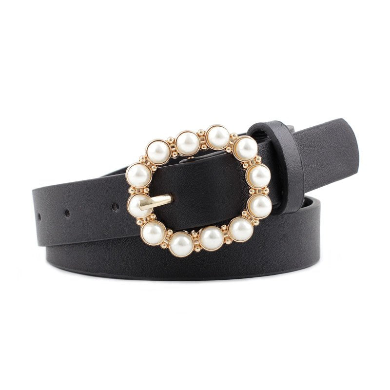 Leather Pearl Belt Ladies With Fashionable Japanese Word Buckle Belt
