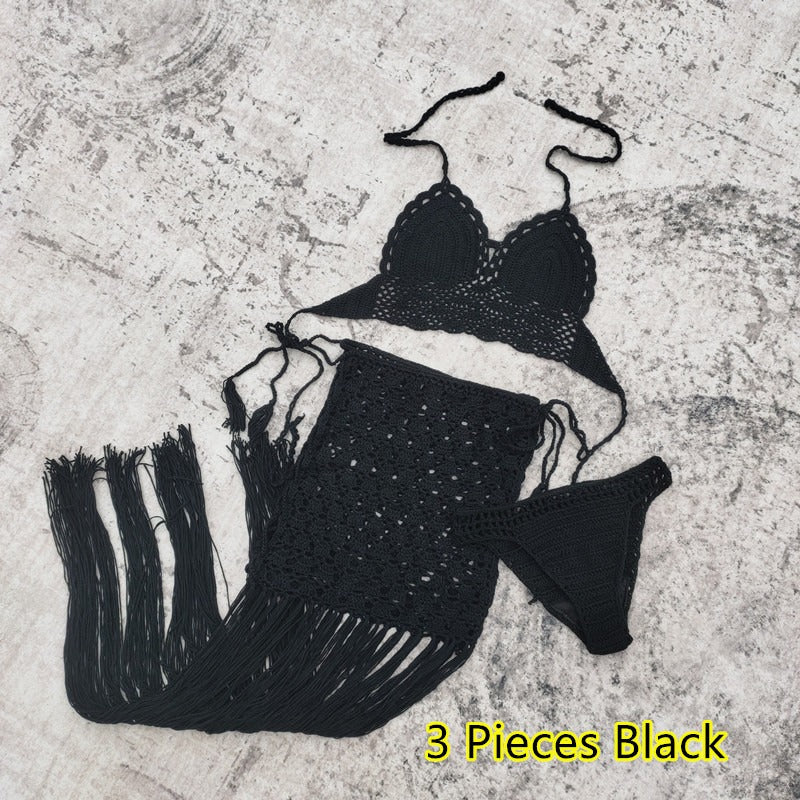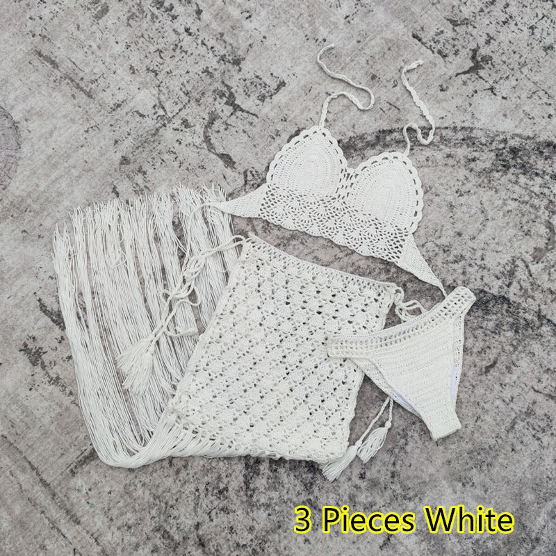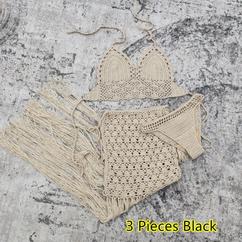 Lombok crochet fringes short skirt set & swimsuit ( 3 pieces )