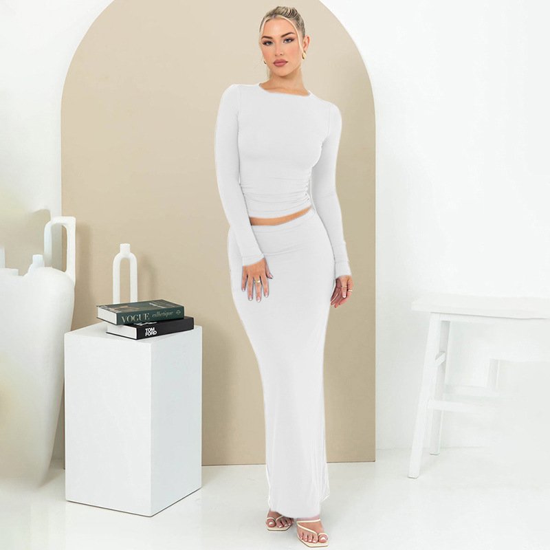 Long Sleeve T-shirt And Long Fitted Skirt Set