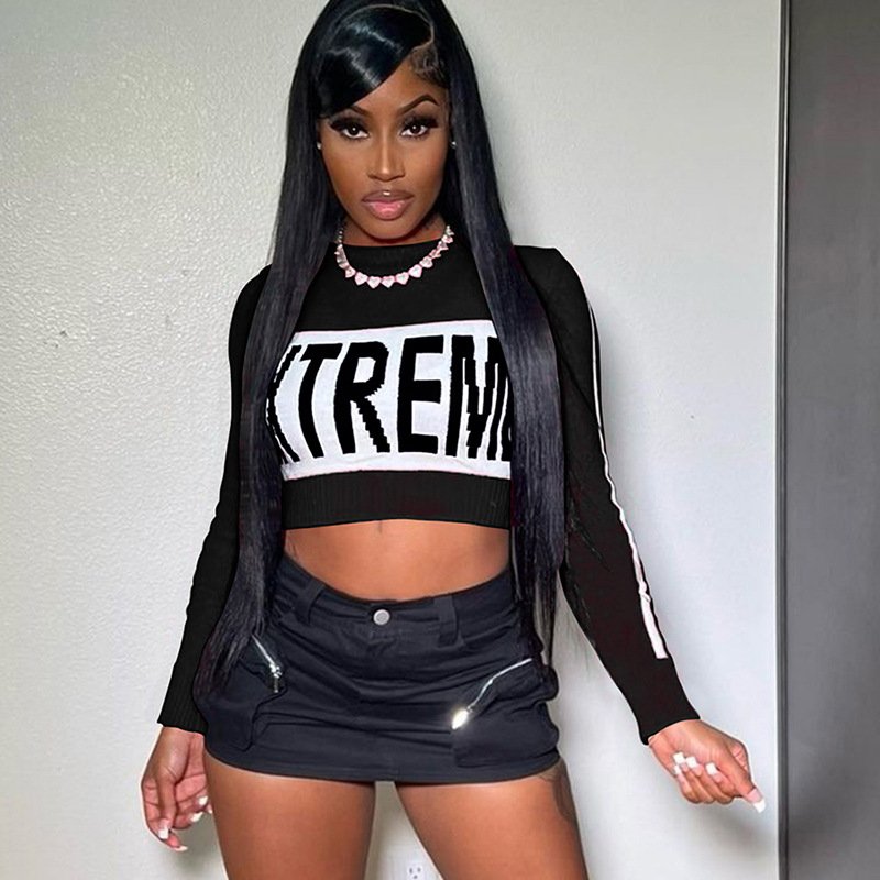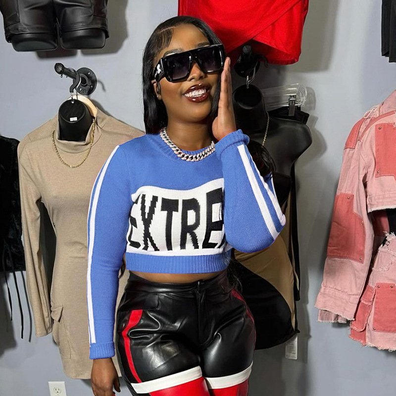 Long Sleeve Knitted Letters Sweater