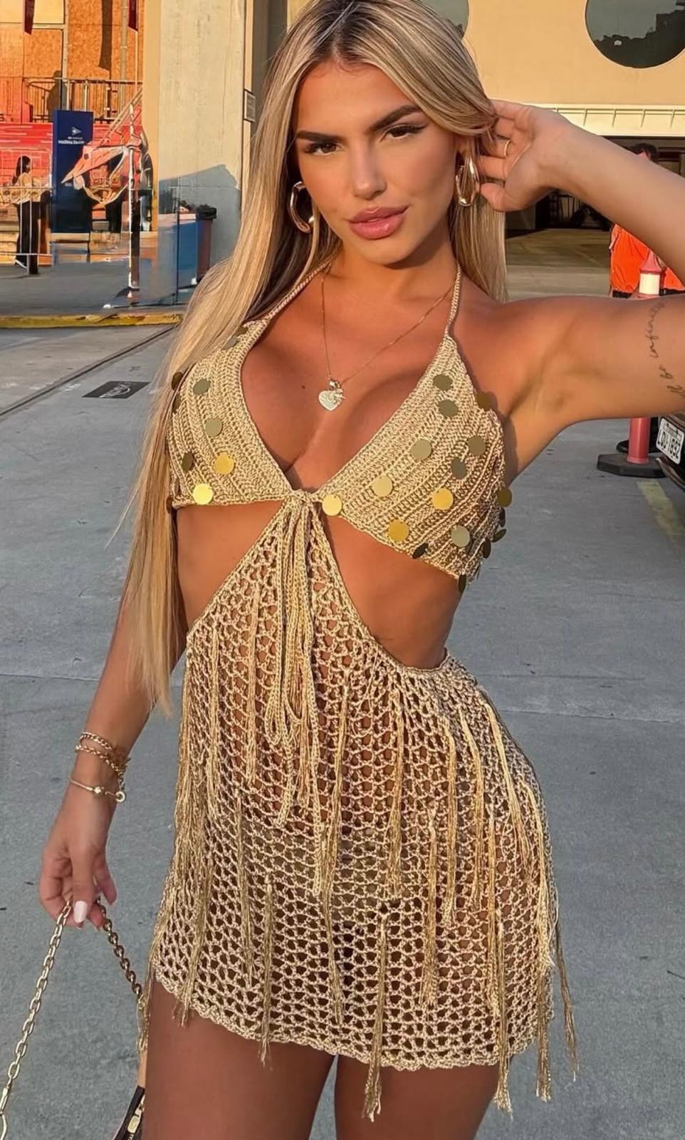 Effortlessly chic and stylish, the Melody Crochet Detail Halter Dress features intricate crochet detailing and a flattering halter neckline. Perfect for any occasion, this dress is a must-have for any fashion-forward wardrobe. Enhance your look with its elegant design and superior quality.