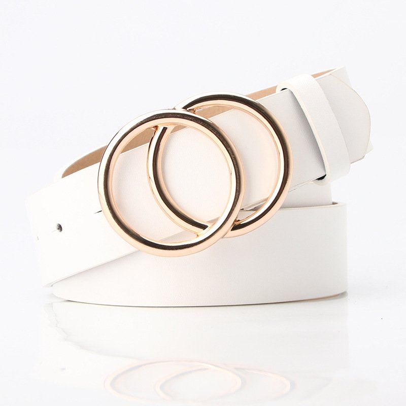 Simple Alloy Round Button Double Ring Belt