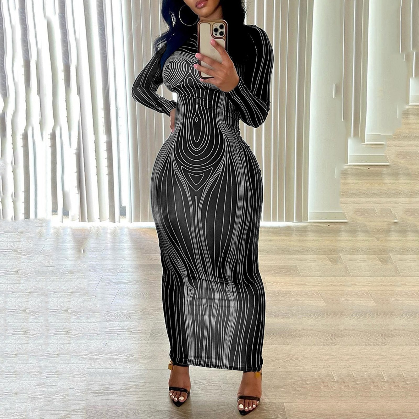Printed Bodycon Dress with Long Sleeves