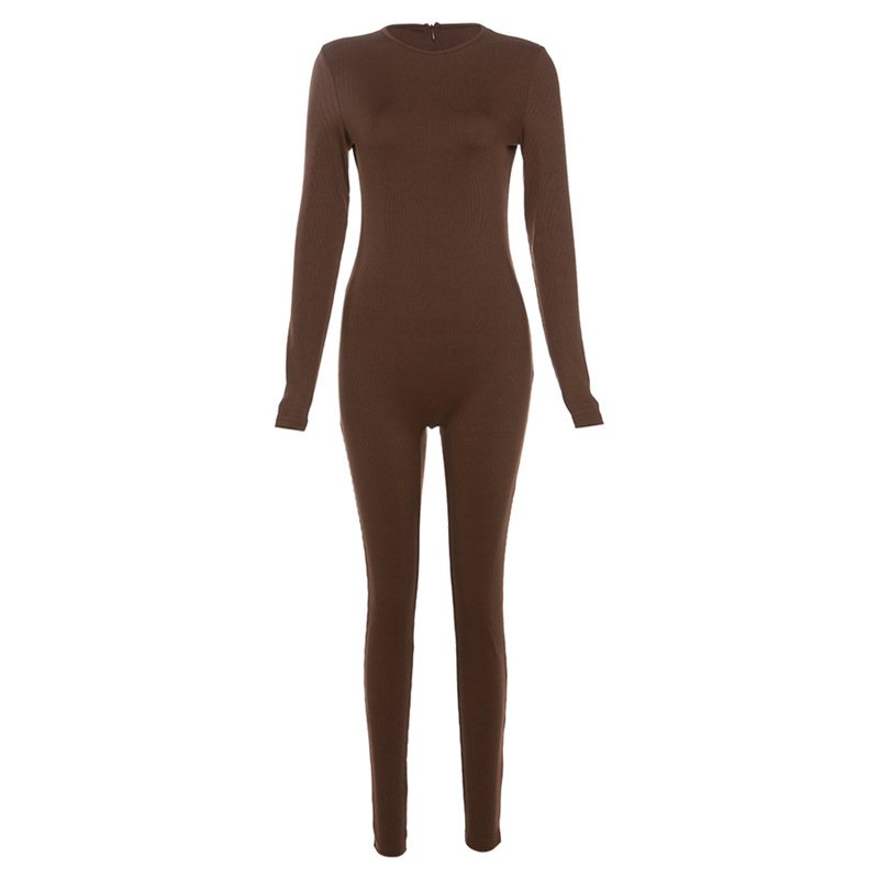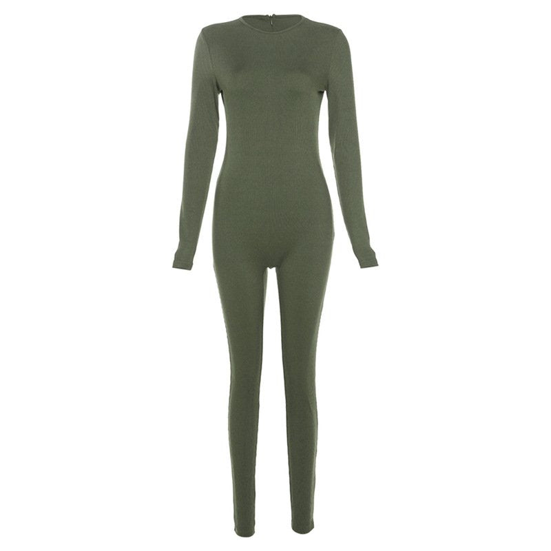 Solid Color High Waisted Tight Sports Bodybuilding Jumpsuit