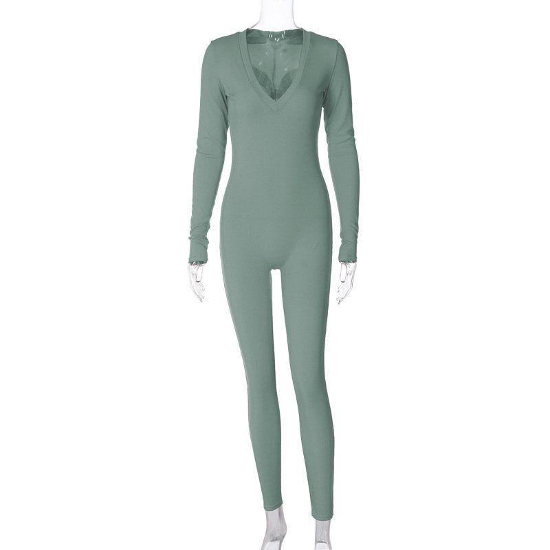 Solid Color Slim Fit Sports Long Sleeve Jumpsuit
