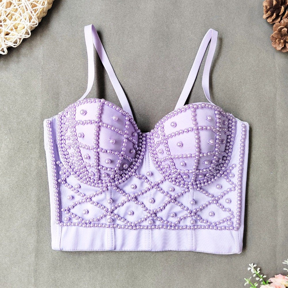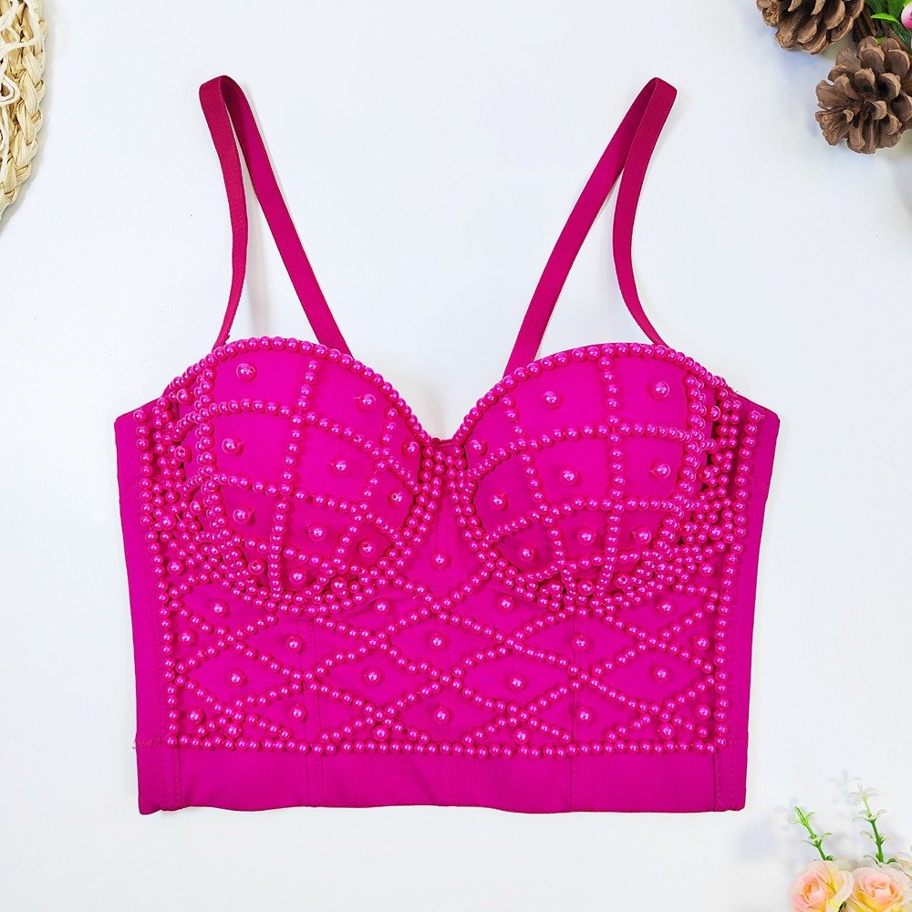 Tube Top With Pearls With Buttons Short Back