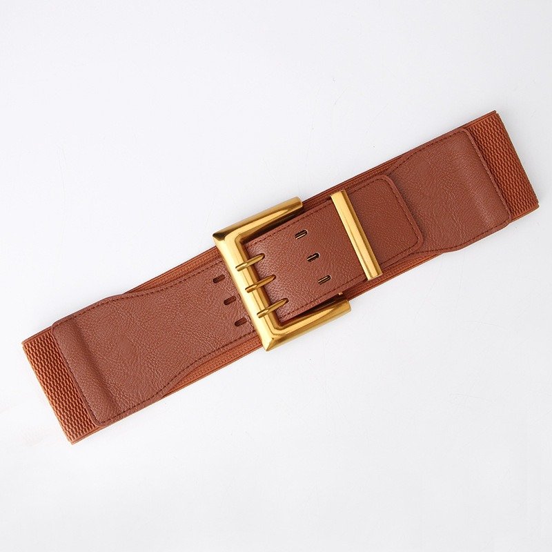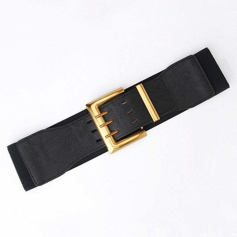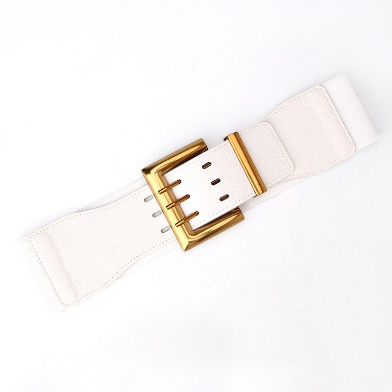Wide Elastic Waist Belt Three Fastener Buckle